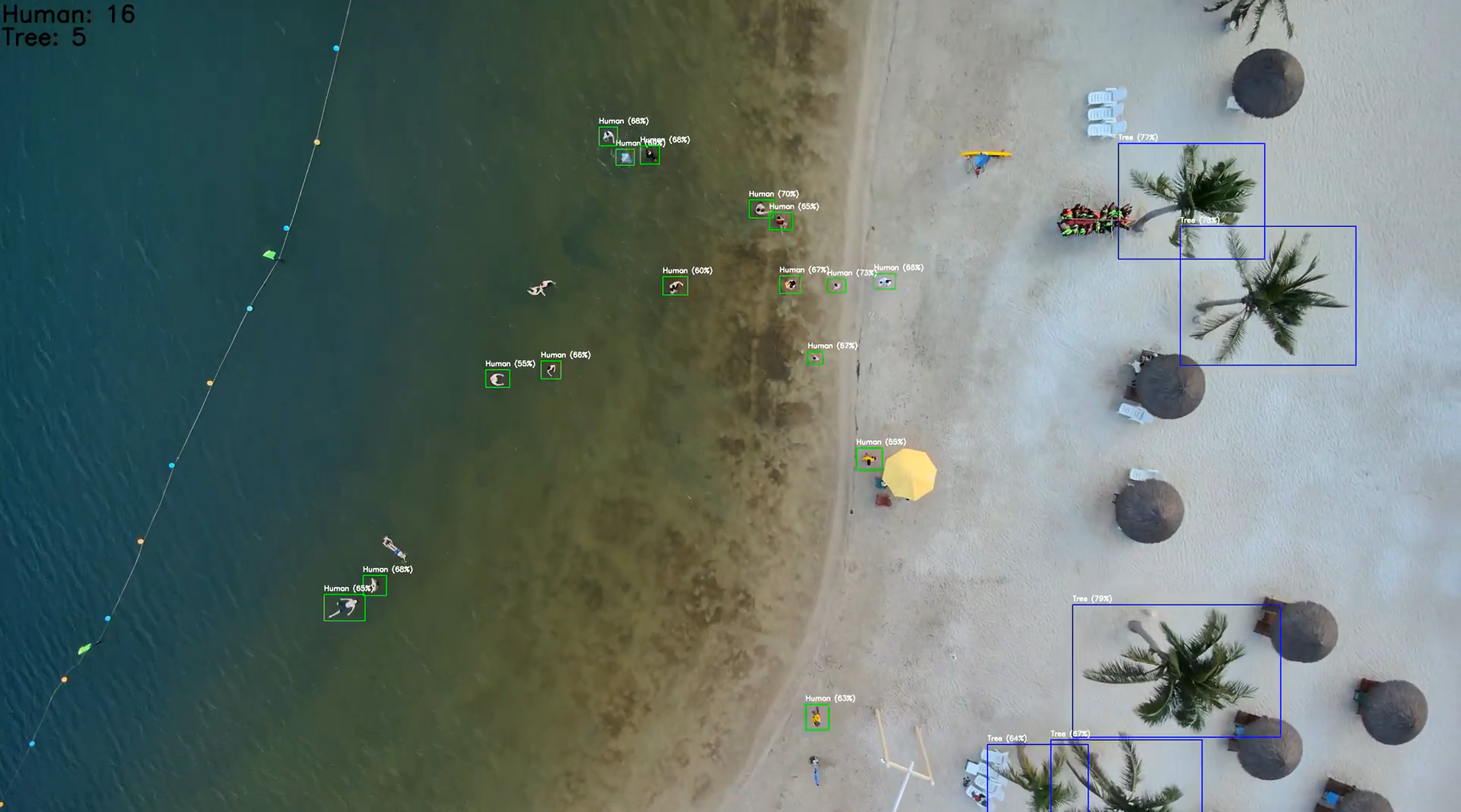 At 50–100 m, a person can be only a few dozen pixels tall; illumination and motion vary rapidly; bandwidth is limited; and backgrounds are dynamic (trees, waves, crowds). The system therefore needs small-object sensitivity without noise explosions, low end-to-end latency for actionable alerts, and robust tracking that does not lose targets during short occlusions.